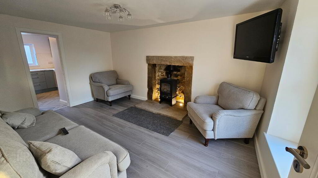 Living room with wood burning stove. Kitchen with integrated friddge freezer and dish washer. Outside wash house. New heating system. Please contact us on 02841764242 for an application form.